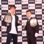 志朗に左ストレートを当てる那須川。怪我をしても左を使わないと勝てない相手だったという。