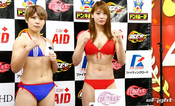 柔道出身の奈部と渡辺華奈が計量で流石のスーパーボディを見せる