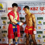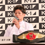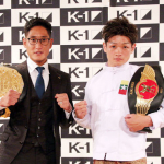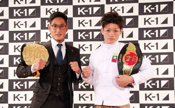 対戦するK-1ライト級王者・林(左)と金子(右)
