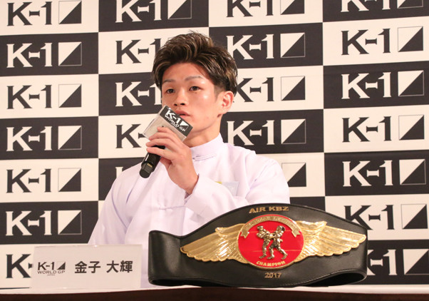 ラウェイのベルトを持って会見に登場した金子