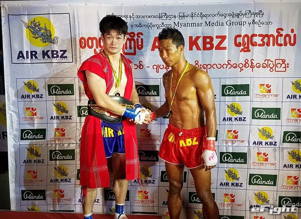 2017年の「Air KBZゴールデンベルトチャンピオンシップ」で優勝した金子。対戦相手と握手をかわす