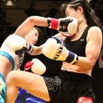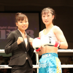 リング上で寺山と佐藤が並ぶ。身長は寺山が高い