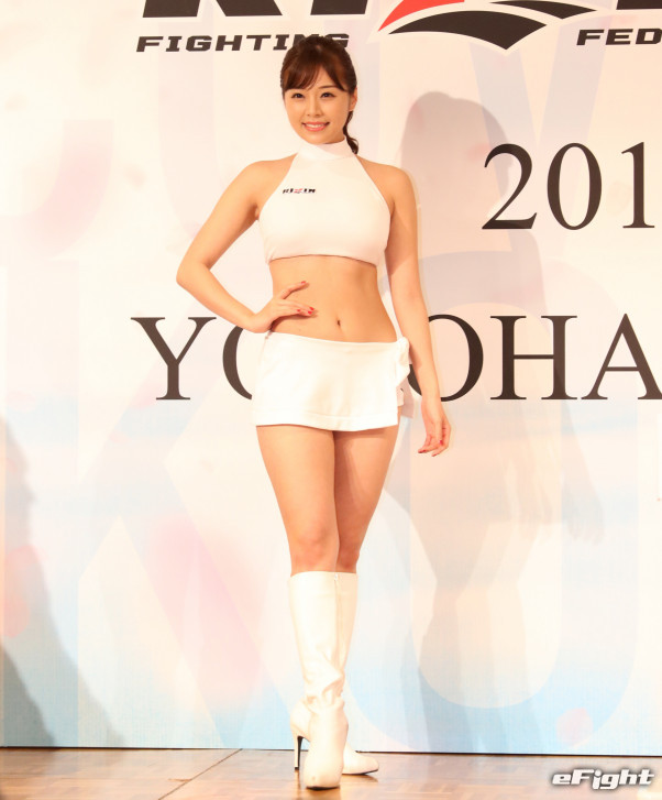 RIZINのラウンドガールコスチュームの川村。見事なプロポーションだ。