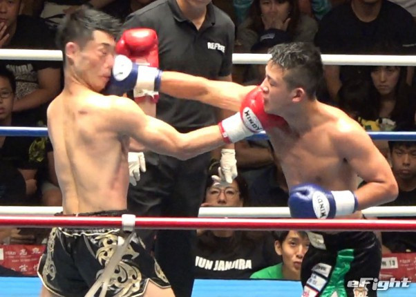 得意のパンチをクリーンヒットさせる足利=18年8月のJ-NET タイトル戦