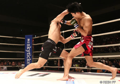 堀口恭司にクロスカウンターを叩き込む朝倉。これが勝負の決め手になった。
