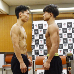 明日決戦を迎える京口と久田がフェイスオフで睨み合う