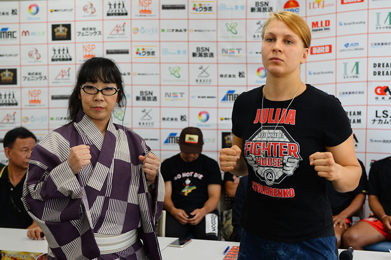 唯一の女子マッチに出場する唯我(左)とユリア(右)も計量パス
