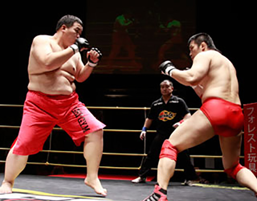 ミノワマンと向かい合うチャンヒ、体格差がわかる1枚だが、このときはまだ140kg=2010年10月 DEEP