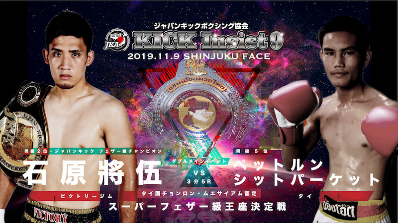 タイ国チョンロン・ムエサイアム認定スーパーフェザー級王座決定戦でJKAフェザー級王者・石原將伍(左)とペットルン・シットパーケット(右)が対戦