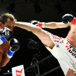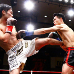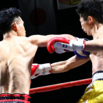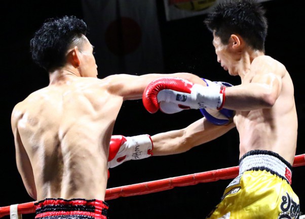 強烈な右ストレートでダウンを奪う小笠原