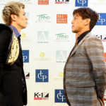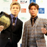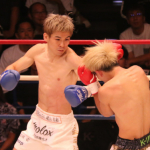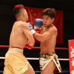 強烈なパンチを振るう山本(右)