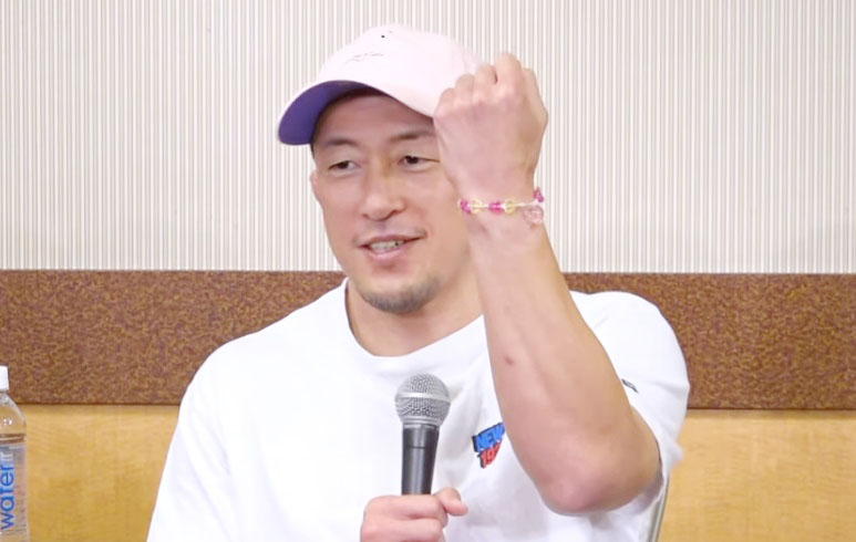 娘にもらったハンドメイドの腕輪を見せる川尻(c)RIZIN FF