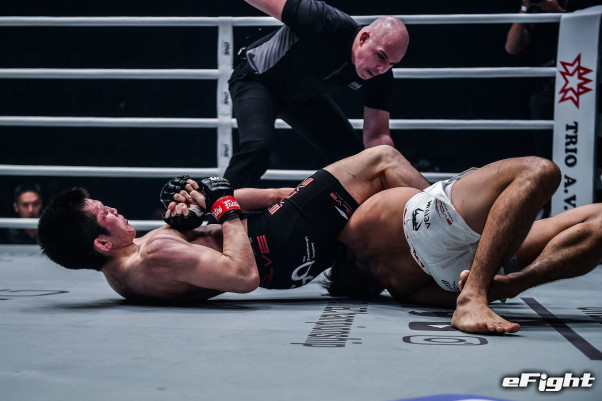 クリスチャン・リーに腕十字をしかける青木、完全に極まったと思ったが、リーの関節は実は柔らかかった!?