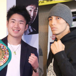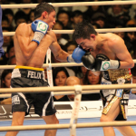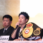 前回の試合、拳四朗の右ストレートがクリーンヒット=4回TKO勝利