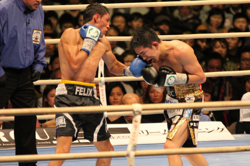 井岡に左アッパーを叩き込むアルバラード=13年大みそか