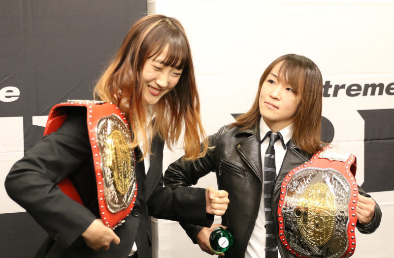 仲の良い両者、紅絹の挑発ポーズに寺山はつい吹き出してしまう