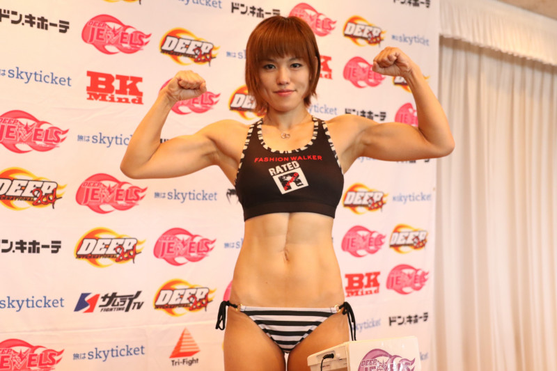 正規王座戴冠を目指す富松は引き締まった腹筋を披露