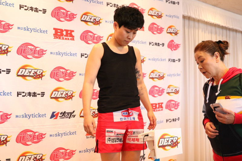 交通遅延により1時間遅れで計量に臨んだヒウンも一回でパス、部ずに明日の試合を迎える
