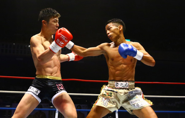 圧倒的実力を見せつけて玖村(左)を撃破した武居(右)