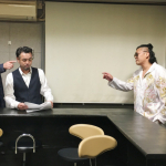 乱入の悪役レスラーと舌戦する吉田