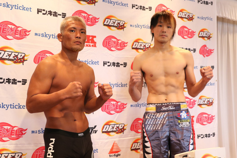 DEEPライト級タイトルマッチで対戦する王者・武田光司(左)と大原樹里(右)