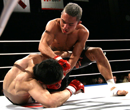 容赦なくパウンドを落とす川原