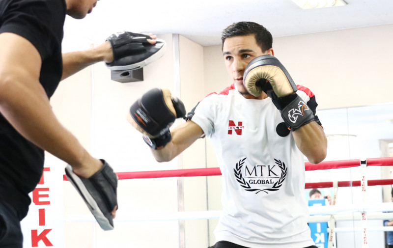公開練習でミットを打つウバーリ