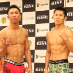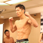みなぎる表情の秀樹(右)に不敵な川島(左)ともに63.95kgで計量をパス