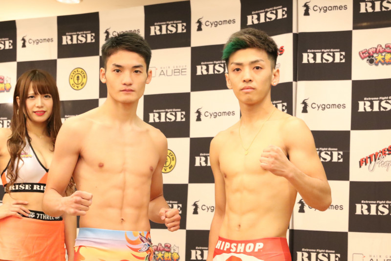 初参戦の大﨑(左)を迎え撃つ政所(右)。共に一回で計量をパス