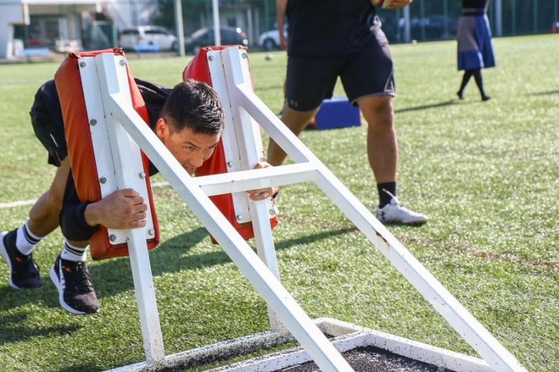 スクラムマシンを決死の形相で押し込む(C)M-1 Sports Media