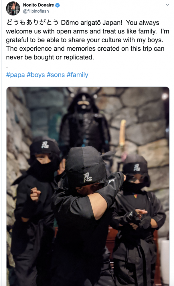 忍者の衣装でポーズを決めるドネアと息子たち(@filipinoflashより)