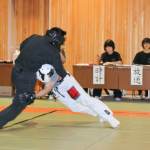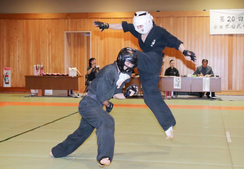 軽量級で優勝した志傳會の岡野誠治は中国拳法らしく両手を広げながら飛び蹴りを決める