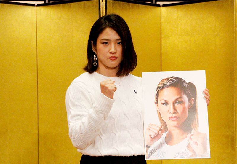 対戦相手ウィンの顔写真を持つ、あい