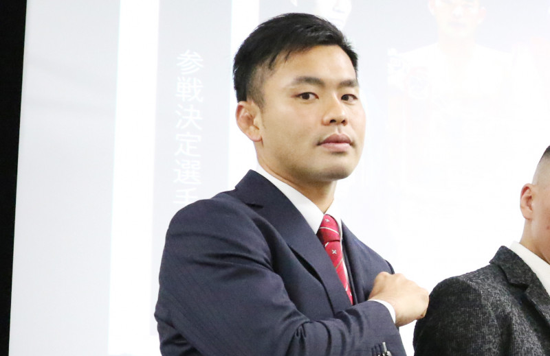 会見に出席しポーズを決める日菜太