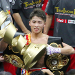 ドネアからダウンを奪った渾身の左ボディがヒットした瞬間(写真=Naoki Fukuda)