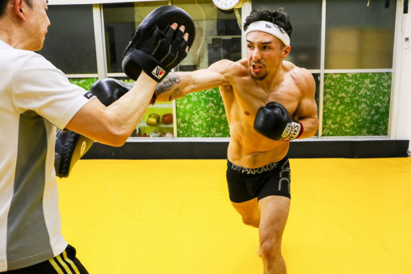 重いパンチをミットに打ち込む木村(C)M-1 Sports Media