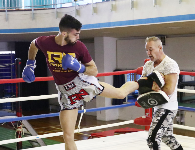 飛び後ろ蹴りを繰り出す