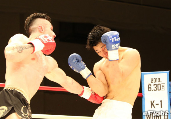 強烈な左ボディでKO勝利する木村
