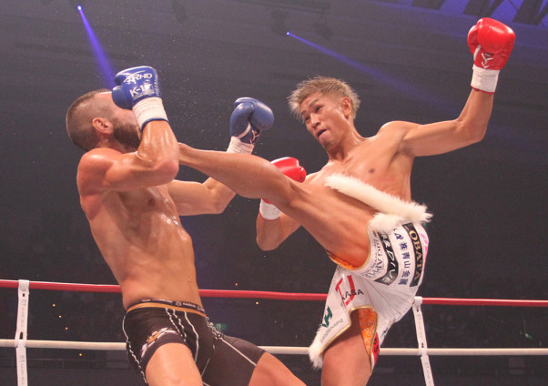 城戸の左ハイキックが世界の強豪に炸裂=2019年K-1・大阪大会