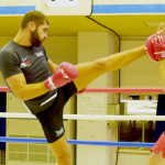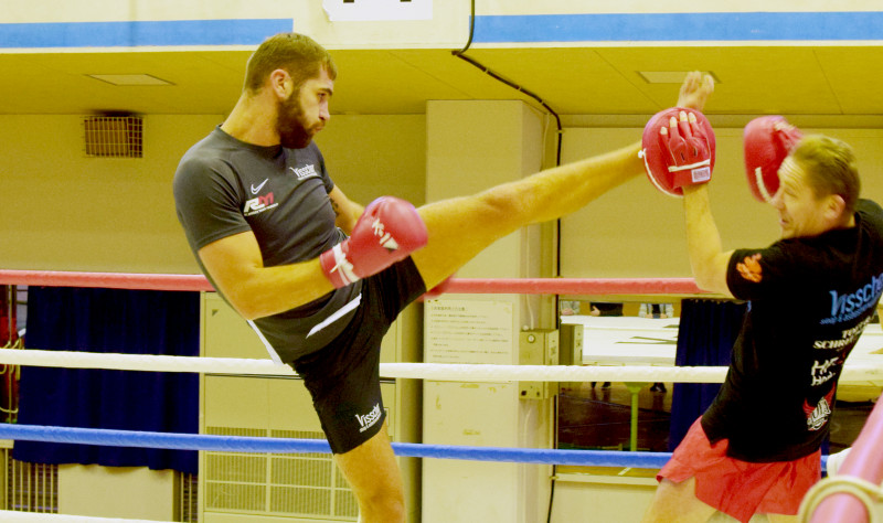 ロエルが197cmの長身から蹴り込むド迫力のハイキック!調子は良さそうだ