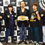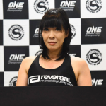 15年7月ROAD FC日本大会の前日計量に臨んだ、当時女子高生のイェジ(右から2番目)。左から2番目は対戦相手しなしさとこ