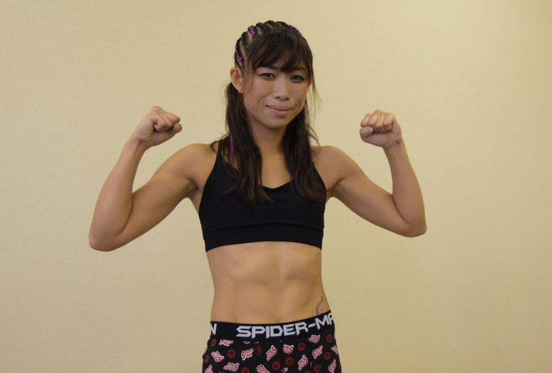 マッスルポーズをとる祥子