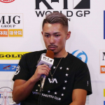 村越の左ストレートが武尊を襲う