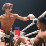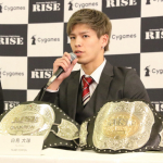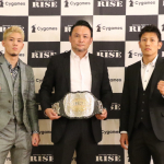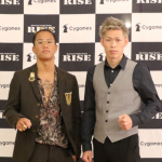 秀樹(右)と原口(左)はRISEライト級王座と共にトーナメント参戦権を争う