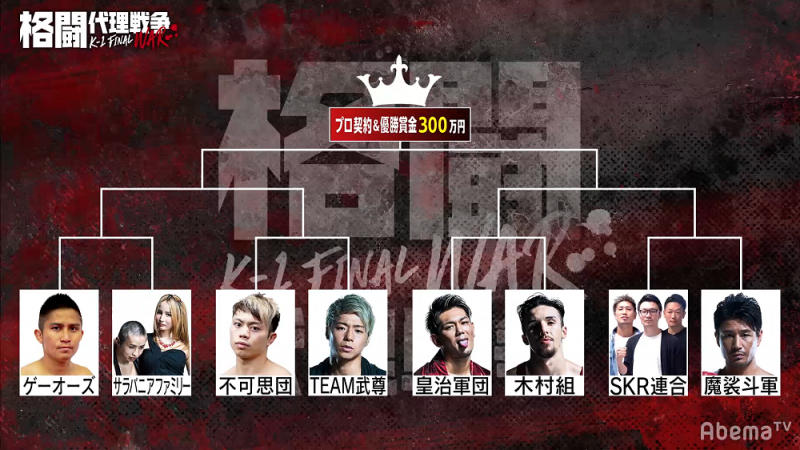 『格闘代理戦争 K-1 FINAL WAR』初戦トーナメントの組み合わせが決定(C)AbemaTV