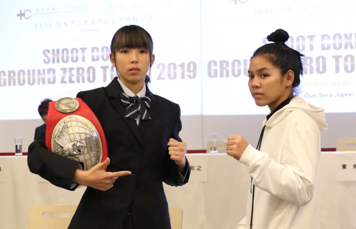 初のタイ人との一戦にも女神(左)は「試合が盛り上がるように倒せたらいいな」とクールにKO宣言