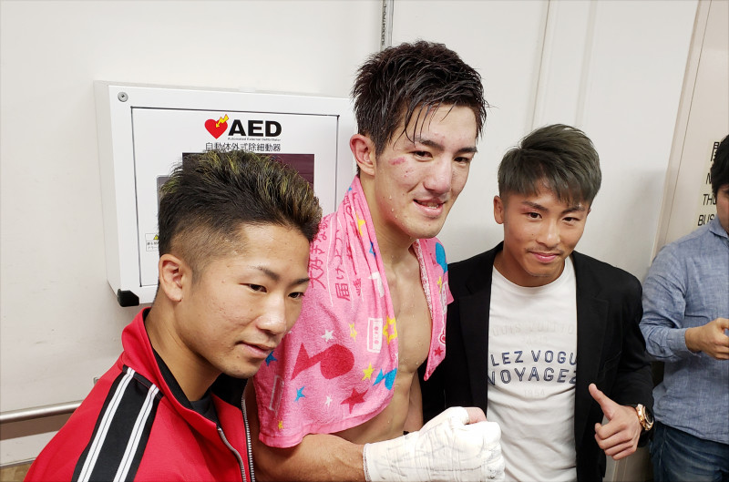 試合後の控え室前で左から井上拓真、井上浩樹、井上尚弥