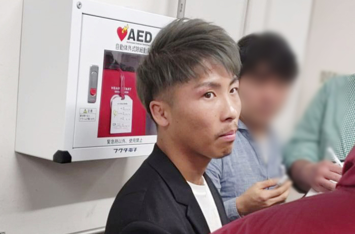 囲み会見でカシメロの挑戦を受けて立つことを明らかにした井上