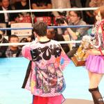 受賞トロフィーを落としてしまい、ラウンドガールがすぐに拾い、再び授与する