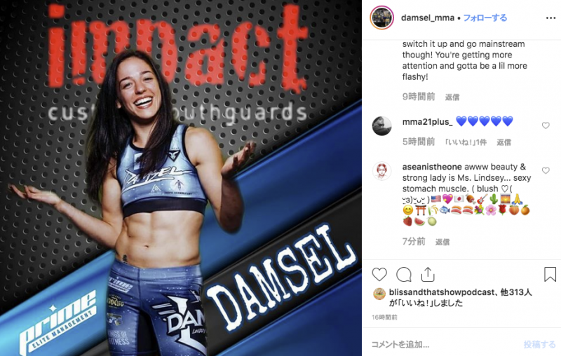 リンジーが本日SNSで公開した6パックの腹筋(@damsel_mmaより)